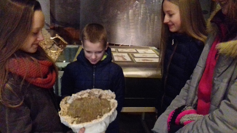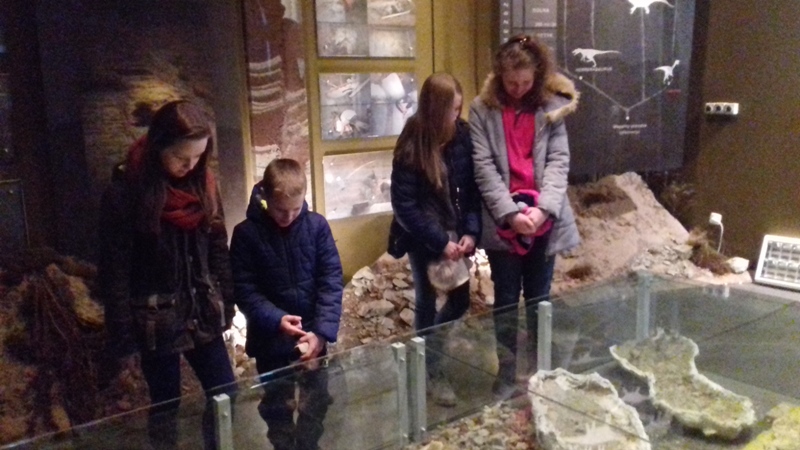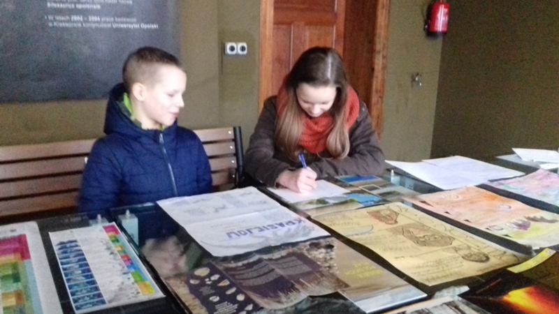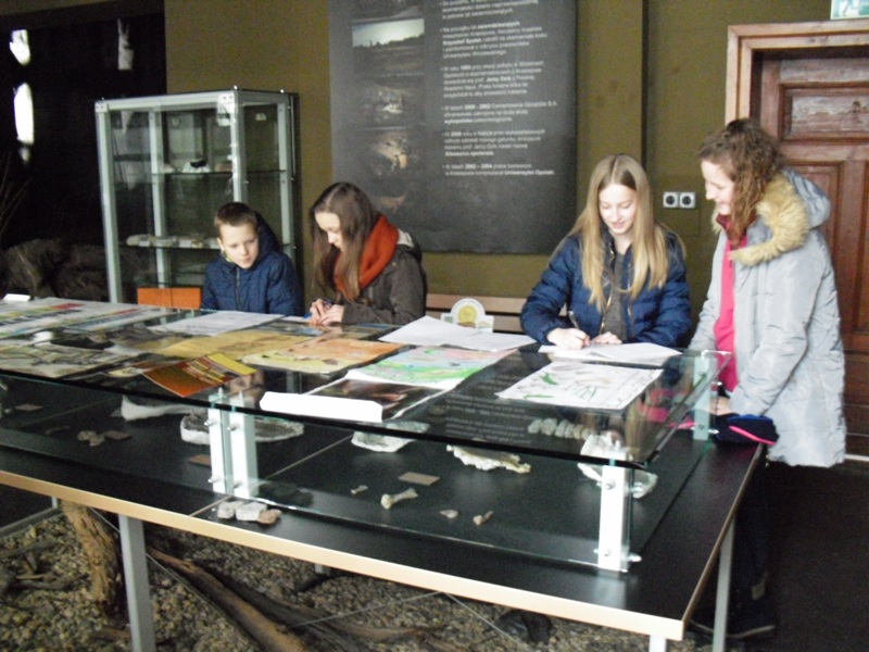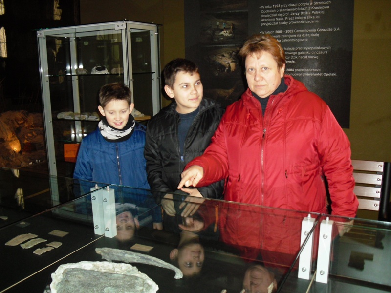 W dniach 17 i 19 stycznia 2018r. w ramach ferii zimowych w Muzeum Paleontologicznym i w Bibliotece Publicznej w Krasiejowie odbyły się zajęcia dla dzieci szkolnych. Kilkoro uczniów, którzy przybyli do muzeum miało okazję poszerzyć swoją wiedzę dotyczącą odkryć paleontologicznych i wydarzeń geologicznych, jakie miały miejsce 225 milionów lat temu. Uczniowie zaczęli pracę od czytania tabeli stratygraficznej i musieli odpowiedzieć na pytanie, jakie wydarzenia miały miejsce w erze mezozoicznej na świecie i co w tym czasie geologicznym wydarzyło się u nas w Krasiejowie, jaki wtedy panował klimat i jak wyglądała szata roślinna. Następnie dzieci poznawały środowisko życia prehistorycznych zwierząt odkrytych w naszej miejscowości. Dowiedziały się kim jest paleontolog i na czym polega jego praca, co to są skamieniałości, jakimi cechami wyróżniają się dinozaury, w jakim czasie żyły, kiedy wymarły i dlaczego nasz Silesaurus opolensis jest pradinozaurem. Miały okazję zobaczyć mezozoiczne skamieniałości amonity, belemnity, gąbki. Rozpoznawały fragmenty zwierząt w postaci czaszek, żuchw, obojczyków, kręgów, kości kończyn umieszczone w gablotach muzealnych. Zobaczyli, jak zabezpiecza się skamieniałości i na czym polega ich preparacja. Dowiedzieli się, czym jest stanowisko dokumentacyjne "Trias" i jaki wpływ na rozwój Krasiejowa miały odkrycia paleontologiczne i wybudowanie JuraParku.