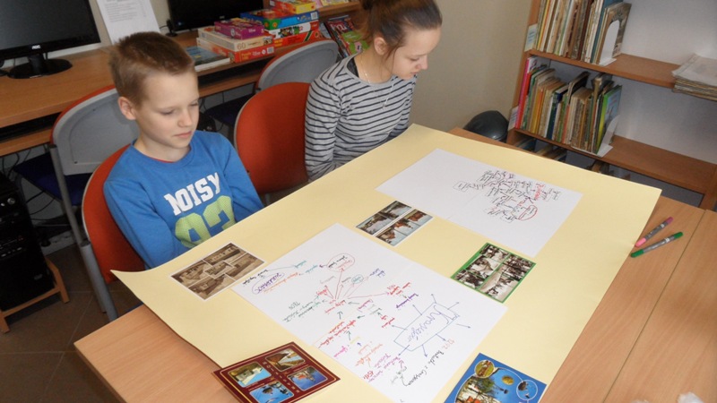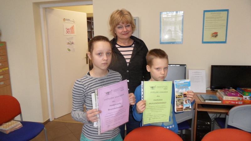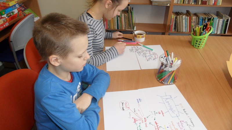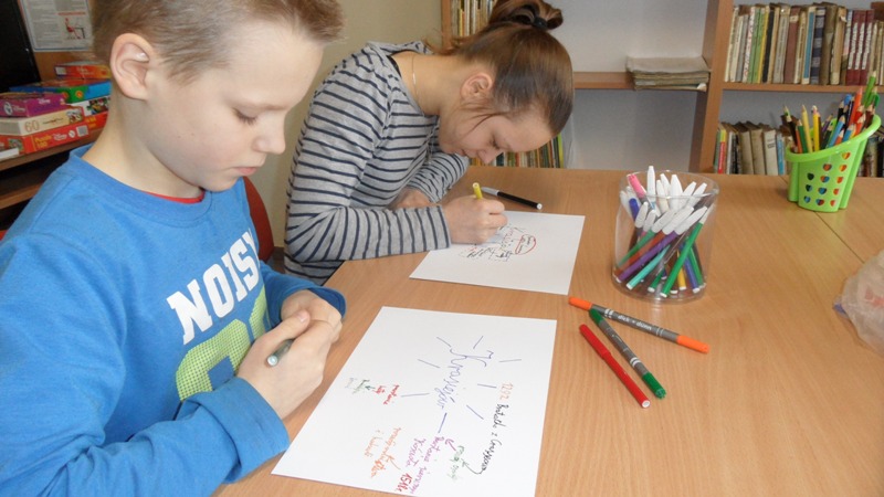 W ostatni dzień ferii zimowych spotkaliśmy się w bibliotece, aby podsumować to, czego nauczyliśmy się podczas minionych dwóch tygodni. Na wstępie poznaliśmy działalność i publikacje Lokalnej Grupy Działania "Kraina Dinozaurów", publikacje wydane przez Stowarzyszenie Dolina Małej Panwi autorstwa Józefa Tomasza Jurosa i powiedzieliśmy sobie o stowarzyszeniach działających na terenie gminy Ozimek. Dzieci zapoznały się również z komiksem Artura Klose pt. "Tajemnice Opolszczyzny" i głośno czytały fragment dotyczący Krasiejowa. Potem każdy z osobna opracowywał własną mapę myśli związaną z historią i rozwojem wsi. Następnie dzieci wspólnie układały hasła do krzyżówki, rozwiązaniem której miała być nazwa naszego pradinozaura Silesaurus. Na koniec opiekunki zajęć podziękowały najwytrwalszym uczestnikom edukacynych spotkań feryjnych, wręczyły pamiątkowe dyplomy i mapy oraz przewodnik po naszej gminie.