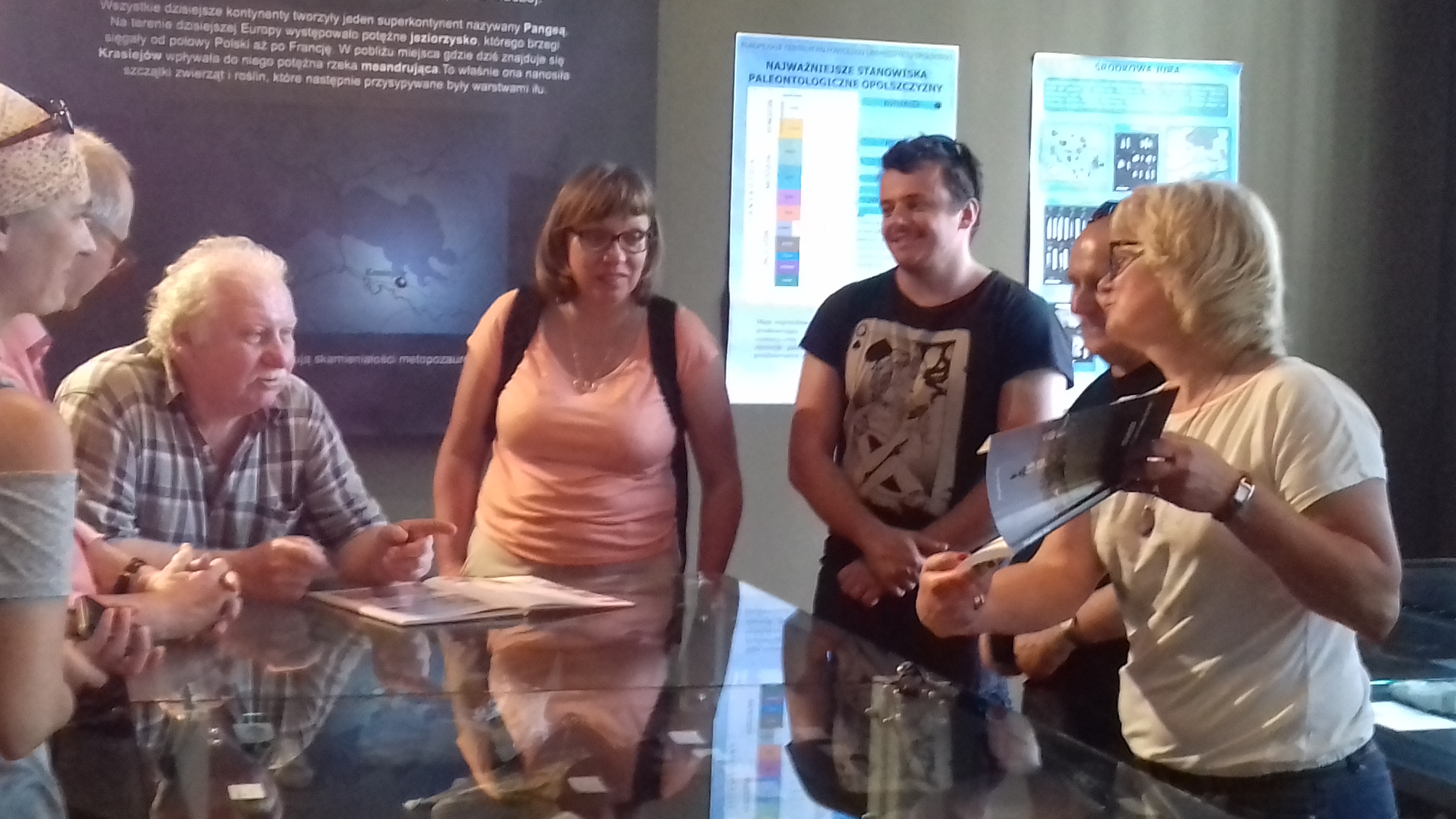 W dniu 4.06. 2018r. wystawę paleontologiczną i Izbę Regionalną odwiedziła grupa uczestników Polskiej Konferencji Sedymentologicznej - POKOS 7. Wśród gości byli polscy i zagraniczni znawcy w dziedzinie geologii sedymentologicznej z różnych ośrodków akademickich i placówek naukowych: z Uniwersytetu Jagiellońskiego, Warszawskiego,Opolskiego, Poznańskiego, PIG-u i z Muschelkalk Museum z Niemiec. Krasiejów odwiedził Hans Hagdorn - doktor honoris causa Uniwersytetu w Tübingen, założyciel muzeum w Ingelfingen i europejskiej sławy znawca zagadnień geologicznych niemieckiego i śląskiego triasu. Cieszy fakt, że nasze małe muzeum znajduje uznanie wśród wielu naukowców. Przewodniczącemu konferencji - prof. J.Szulcowi książkę o Krasiejowie wraz z podziękowaniami za wieloletnią współpracę wręczyła S.Widawska - członkini SMK. Podczas sesji terenowej w JuraParku prof. J. Szulc z UJ i A. Bodzioch- prof.UO, omówili paleośrodowiskowe uwarunkowania kopalnych biocenoz i zinterpretowali procesy tafonomiczne w osadach górnego triasu Śląska. Uczestnicy POKOS-u w ciągu kilku dni trwania konferencji odwiedzili również opolskie kamieniołomy i wyrobisko iłów oraz muzeum ze szczątkami " smoka wawelskiego" w Lisowicach.