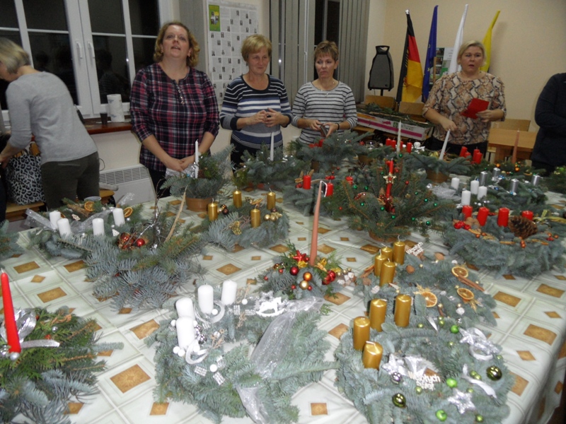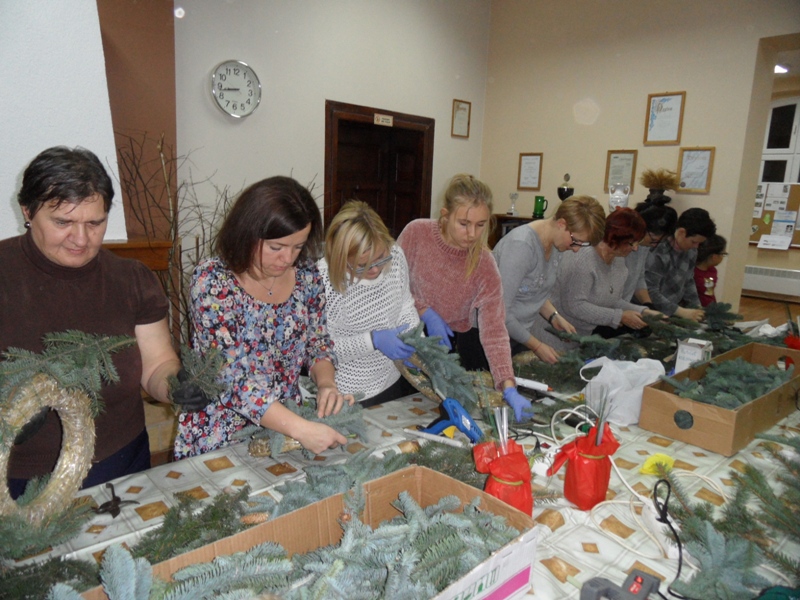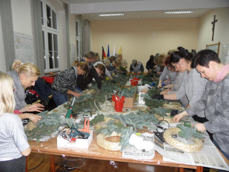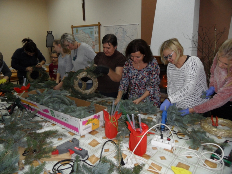 W dniu 23.11.2018r. w Starej Szkole w Krasiejowie odbyły się warsztaty florystyczne prowadzone pod kierunkiem pani Katarzyny Sklorz, w których wzięło udział ponad dwadzieścia pań i troje dzieci. Wszyscy uczestnicy wykazali się niesamowitą inwencją twórczą. Panie i dzieciaki podczas trzech godzin pracy wyczarowały przepiękne wieńce adwentowe i stroiki. Zajęcia, które cieszyły się ogromnym powodzeniem i bardzo się wszystkim podobały, odbyły się dzięki środkom z funduszu sołeckiego wsi Krasiejów. Podczas warsztatów do świetlicy zawitał sołtys Tadeusz Markulak, który cieszył się z frekwencji i faktu, że mieszkanki Krasiejowa świetnie integrują się podczas wspólnych działań w miłej przedświątecznej atmosferze. Specjalne podziękowania uczestniczek zostały skierowane do pani Katarzyny Sklorz za wyrażenie zgody na przeprowadzenie zajęć i fachowe porady, pana Piotra Szuberta za przygotowanie zielonych gałązek i sali oraz do pani Sylwii Widawskiej, która z ramienia Rady Sołeckiej zajęła się organizacją spotkania.