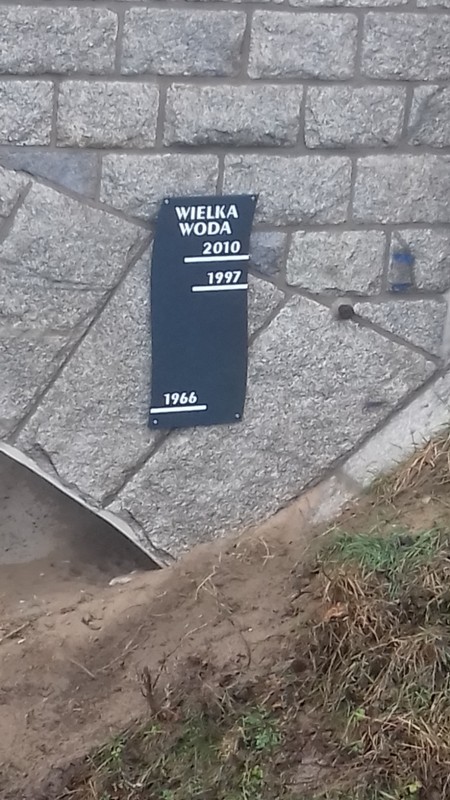Na pamiątkowym wodowskazie umieszczonym przy dużym moście, a wskazującym poziomy wysokiej wody białą farbą naniesiono poprawki, które uczyniły go bardziej czytelnym. Dziękujemy!
