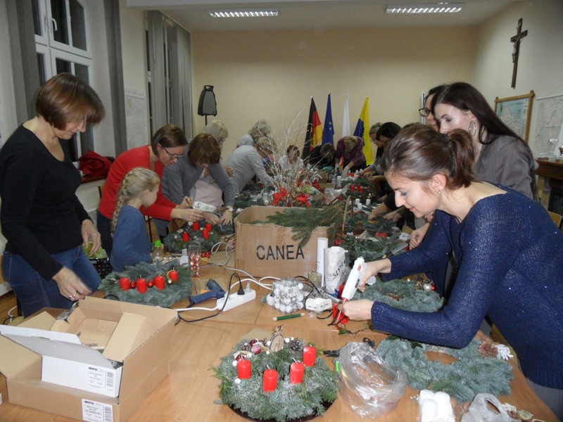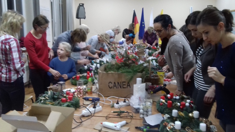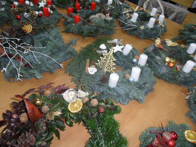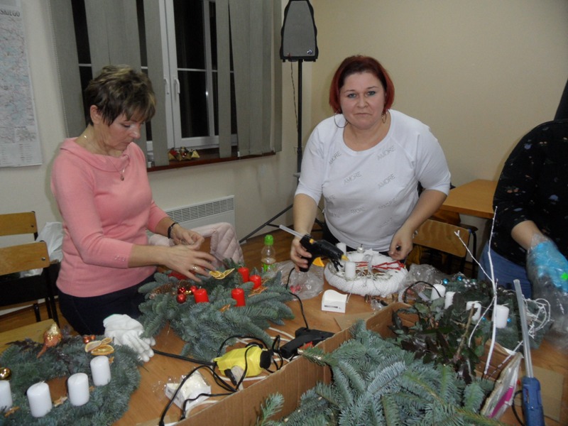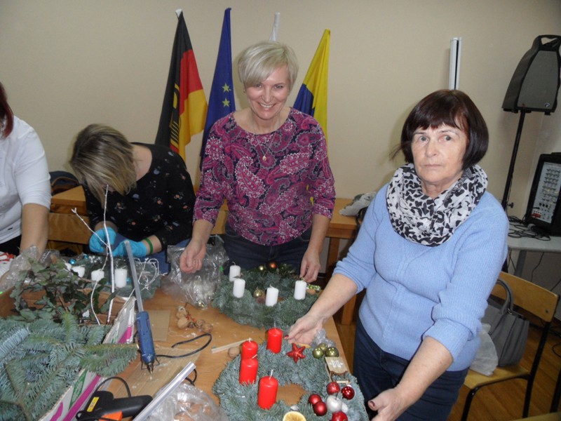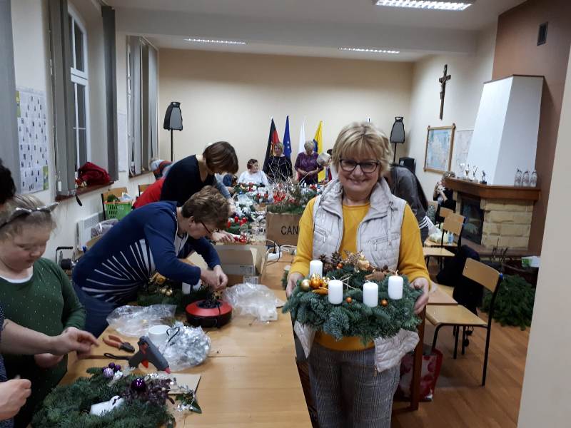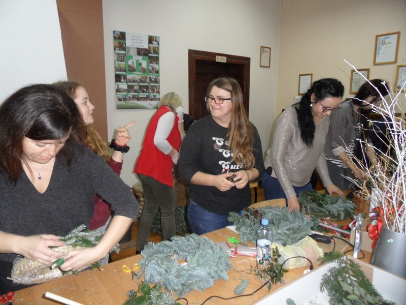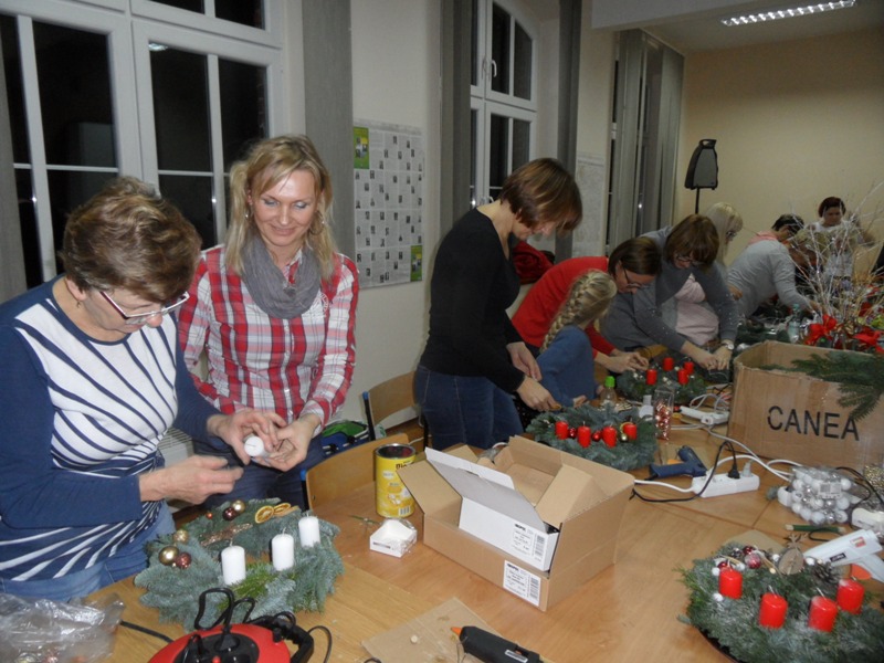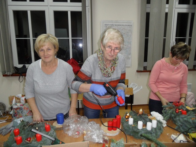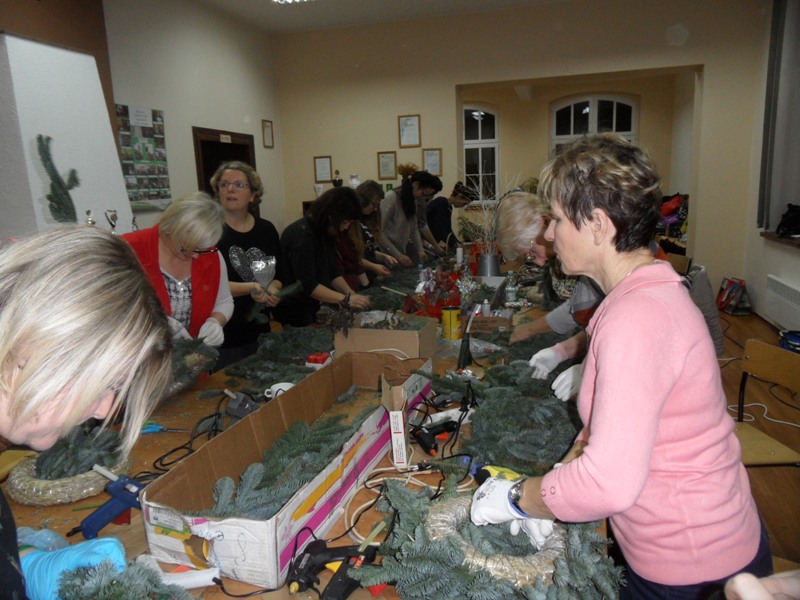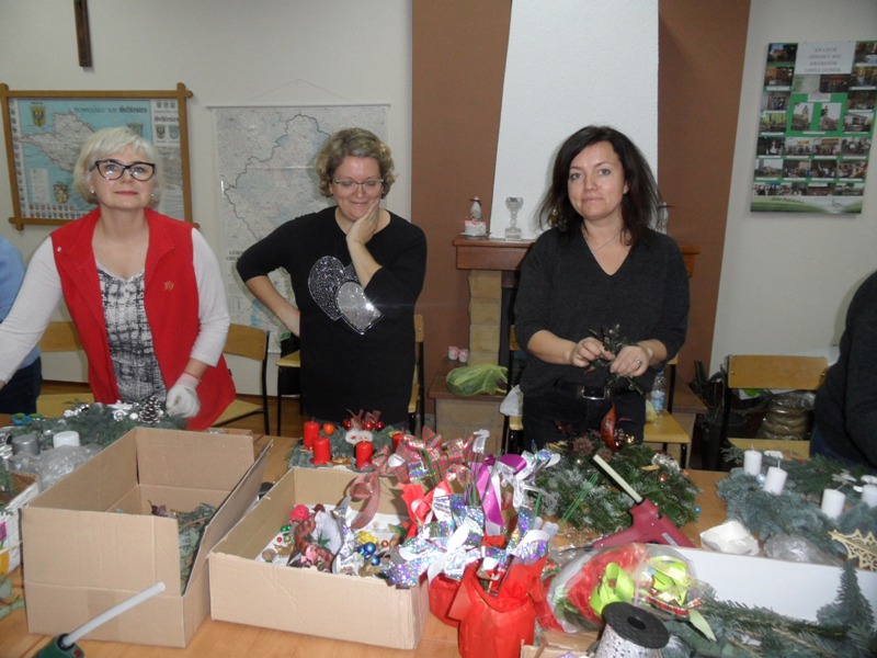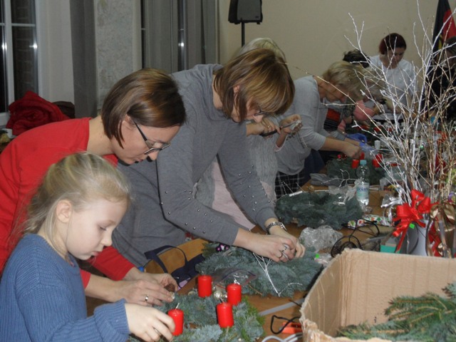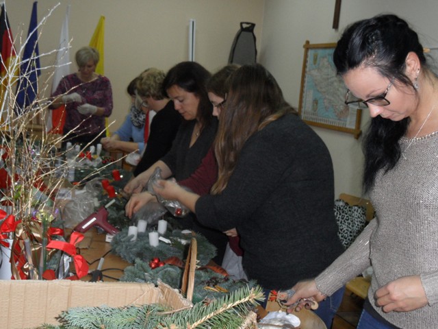 W piątkowy wieczór, dn.29.11.2019r. w świetlicy "Starej Szkoły" spotkały się panie i dzieci, aby wziąć udział w adwentowo - świątecznych warsztatach florystycznych. Zajęcia prowadziła Katarzyna Sklorz, która od dwóch lat uczy nas wspaniałej sztuki tworzenia małych artystycznych dzieł. Do prac włączały się też dzieci, które na spotkanie przyszły razem z mamami lub babciami. Podczas warsztatów prowadzone były zajęcia językowe dla najmłodszych, które prowadziły panie Marzena Misz i Sylwia Widawska. Dzieci malowały, łączyły w pary symbole świąteczne, czytały głośno wiersz o Mikołaju, gromadziły słownictwo wokół tematu adwent i Mikołaj. Prace artystyczne w postaci stroików powstałe pod okiem florystki Kasi wprawiły w zachwyt ją samą. Wszyscy bez wyjątku bardzo mocno angażowali się w wykonanie jak najpiękniejszego adwentowego stroika, a niektórym paniom udało się zrobić aż dwa. Spotkanie było okazją do miłego integrowania się, pielęgnowania śląskich tradycji, ale i okazją do posmakowania dobrego kołocza i wypicia smacznej kawy. Warsztaty były finansowane ze środków TSKN w Opolu i funduszu sołeckiego. Dziękujemy wszystkim osobom, które przyczyniły się do ich organizacji w szczególności pani Katarzynie Sklorz, że znalazła czas na ich przeprowadzenie, panu Marcinowi Konietzko za napisanie projektu na przeprowadzenie zajęć, pani Jolancie Podkowa i Sylwii Widawskiej za czuwanie nad całością oraz Piotrowi Szubertowi za zorganizowanie gałązek.