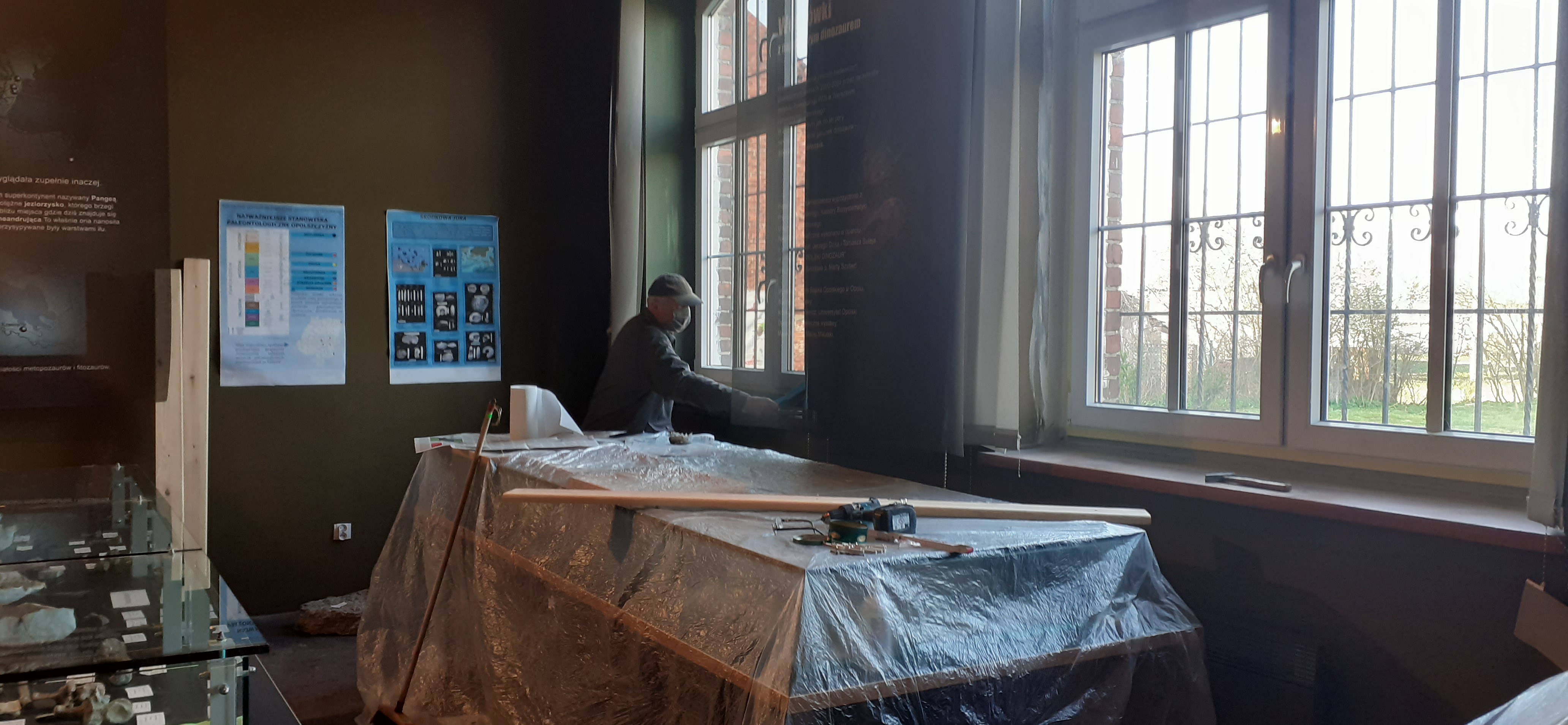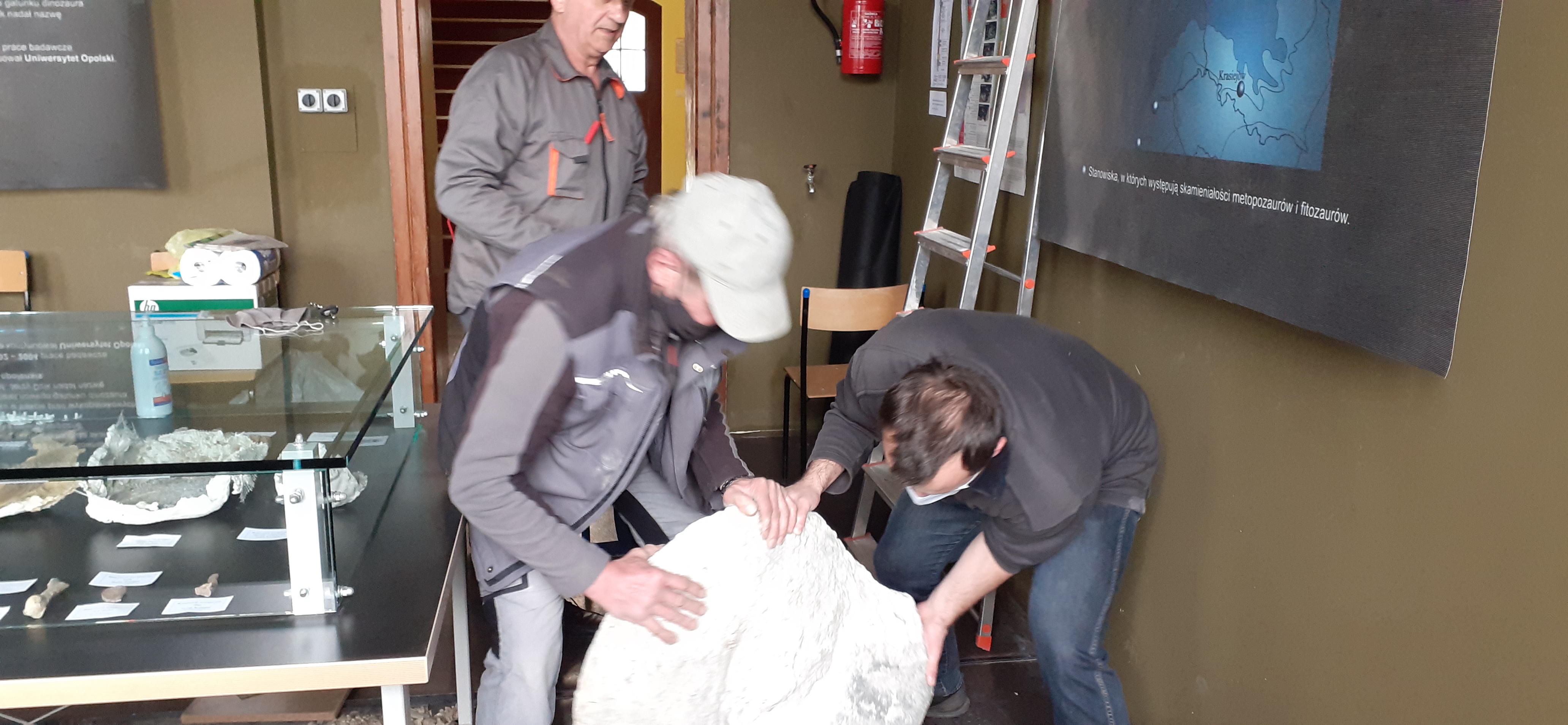 W piątkowe popołudnie w godz. od. 17.00 do 20.00 członkowie Rady Sołeckiej J. Sklorz, J. Bonk, M. Konietzko, S. Widawska oraz członkini DFK I. Feliks prowadzili dalsze prace porządkowe w muzeum i starej szkole. Jan Sklorz z pomocą Jana Bonka przywiózl wykonany w swojej pracowni modelarskiej stelaż, w którym posadowiono pozyskanego 3 lata temu amonita. Cała "operacja " wymagała męskiej siły. Dziękujemy osobom - na które zawsze można liczyć - za pomoc w przygotowaniach do ogólnopolskiej "Nocy Muzeów" .