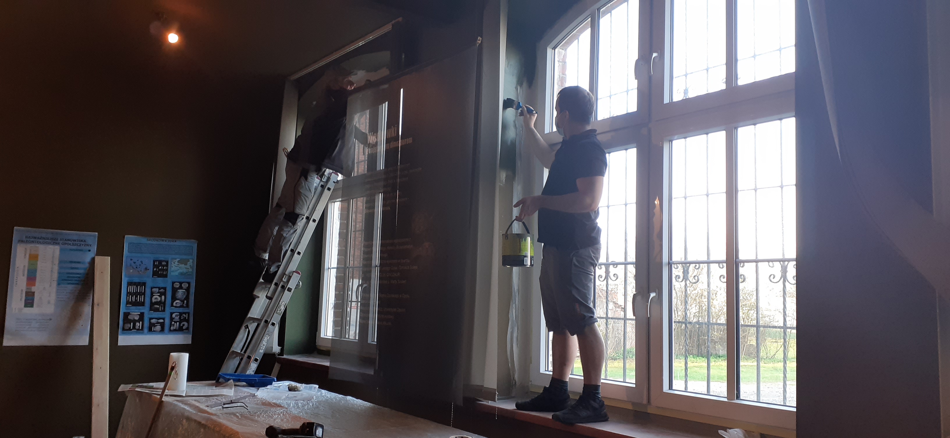 W sobotę dn. 24.04 grupa członków Rady Sołeckiej prowadziła dalsze prace remontowe w muzeum w Starej Szkole. Trzeba było wykończyć parapety, pomalować wnęki okienne, zawiesić plansze, ustawić części styropianowej wystawy, wymienić kontakty elektryczne i wyczyścić z kurzu kolejne gabloty. Podziękowania dla J.Bonka, J.Sklorza, P. Szuberta, M. Konietzko i S. Widawskiej za poświęcenie kilku godzin na prace społeczne. Miesiąc wcześniej pomocą służyli jeszcze S. Szubert, I.Feliks, P. Misz, W. Misz.