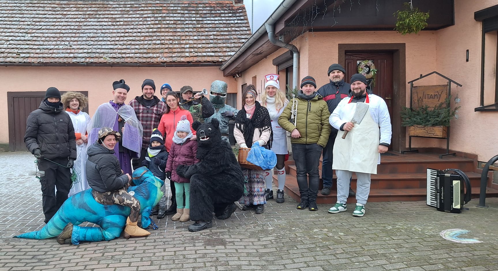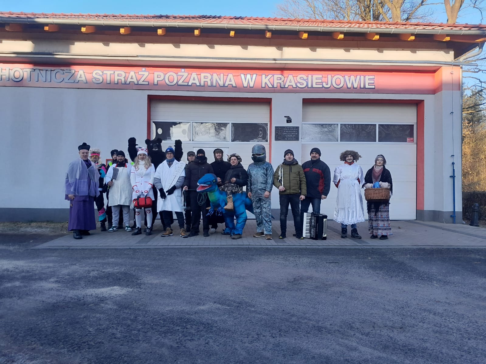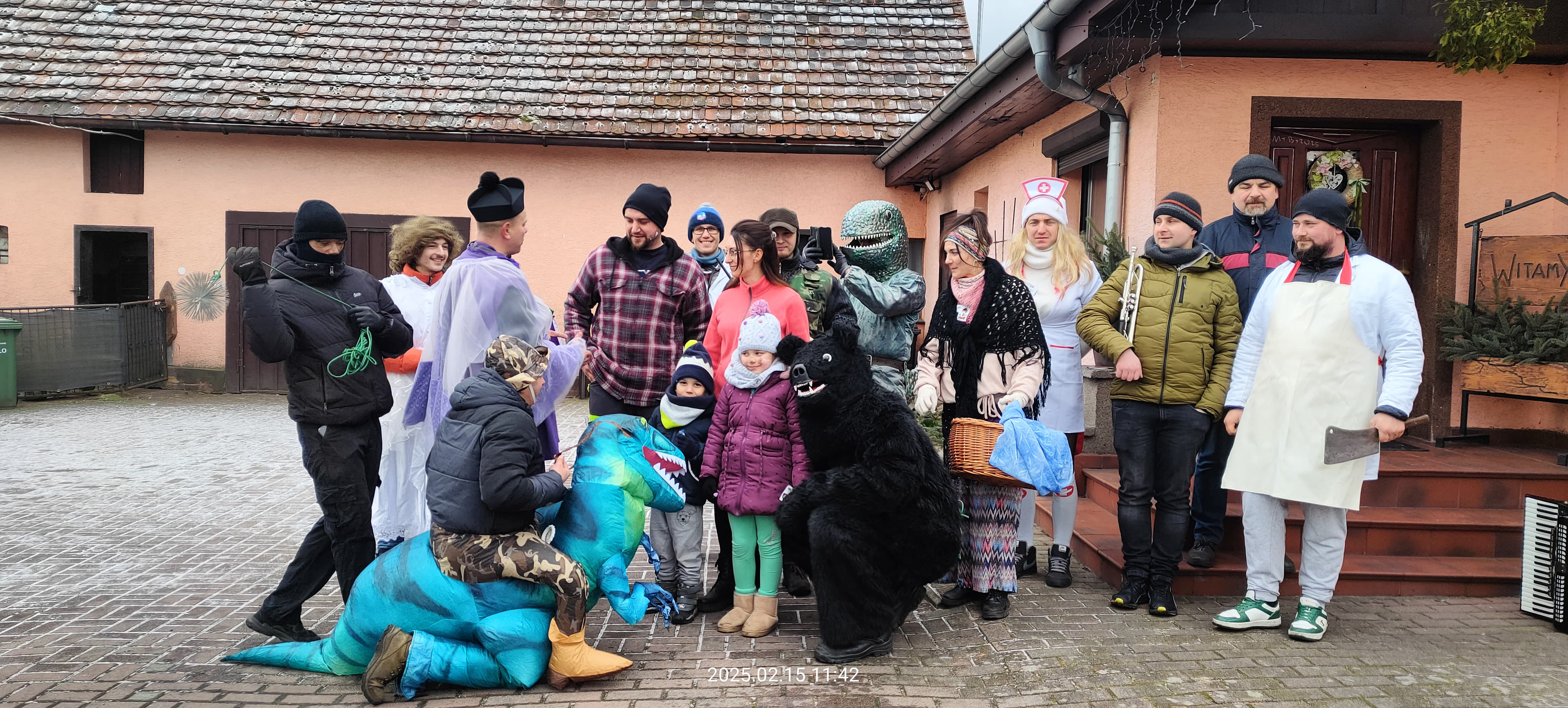 W sobotnie przedpołudnie dn. 15 lutego Bery z dinozaurem odwiedziły domostwa położone po lewej stronie torów kolejowych. Przebierańcy pukali do drzwi lub byli witani przez gospodarzy, którzy wierzą, że odwiedziny berów będą żródłem dobrej energii w najbliższym roku. Taniec z niedźwiedziem ma przynieść zgodnie z tradycją szczęście do domu. Mieszkańcy mogli sie w tym dniu pożalić na wszystko, co nie podobało im się w minionym roku we wsi. Barwny korowód wędrował ulicami Krasiejowa wpisując się od lat w karnawałowy krajobraz. Bery zostały zorganizowane przez członków OSP pod kierunkiem Tomasza Chudali. Datki przeznaczone będą na szczytne cele, bo potrzeby strażackie są bardzo duże. Dziekujemy Berom za odwiedziny!