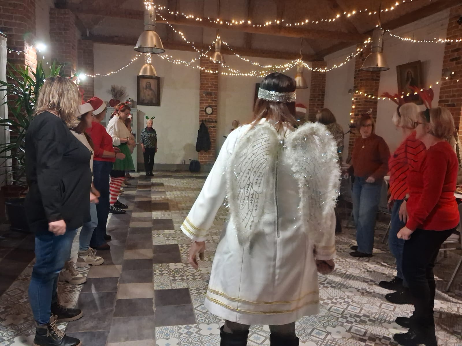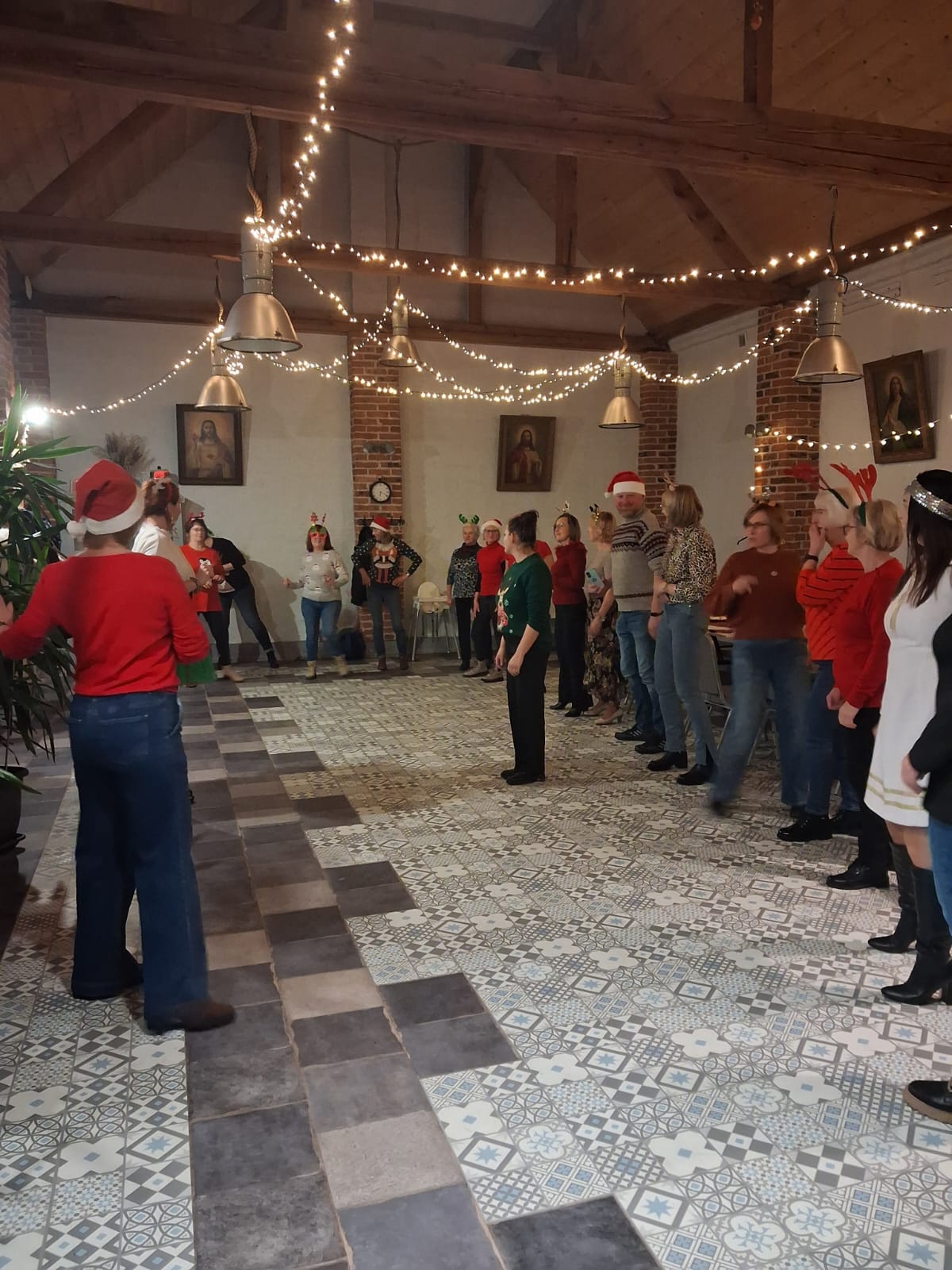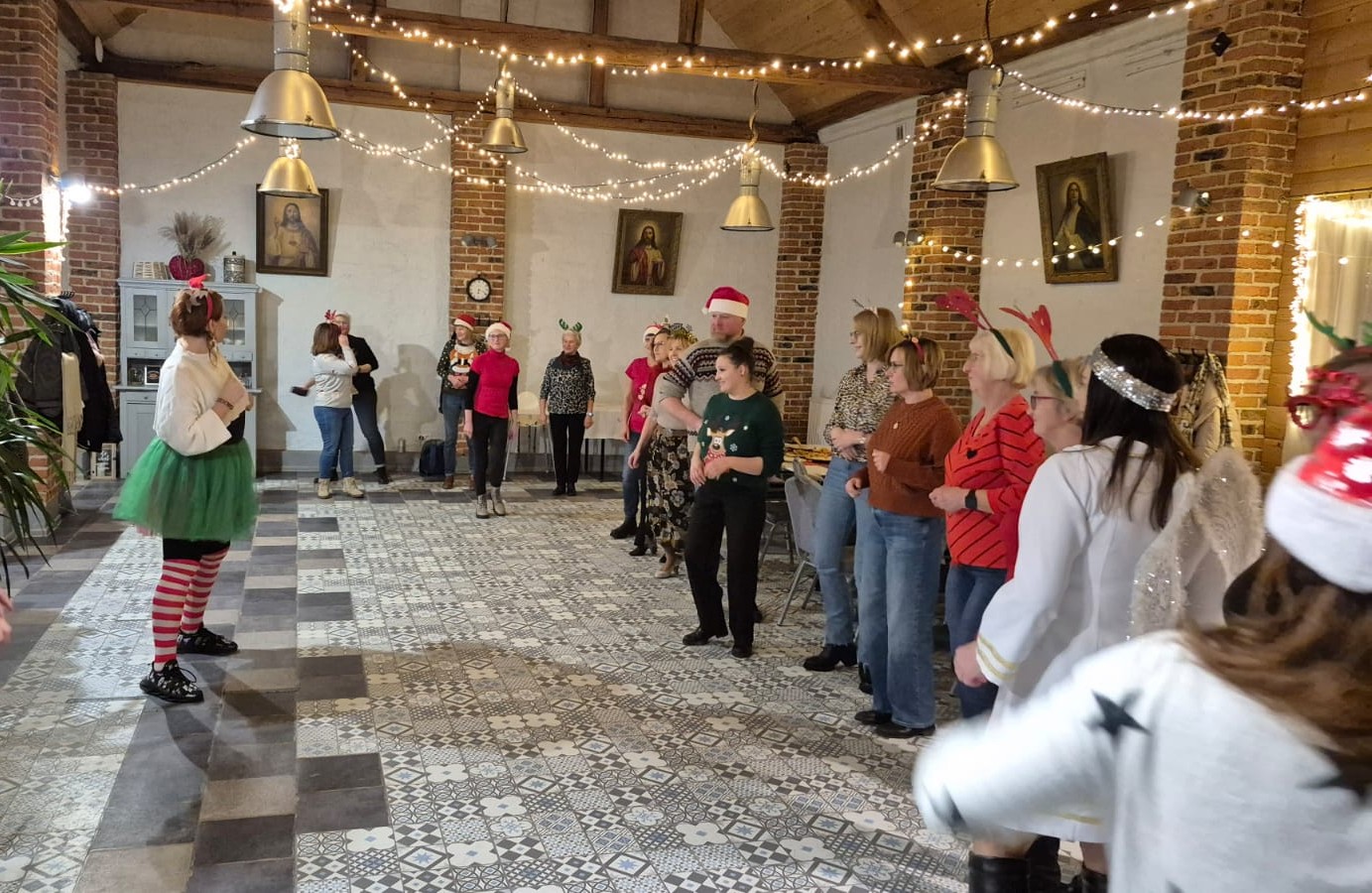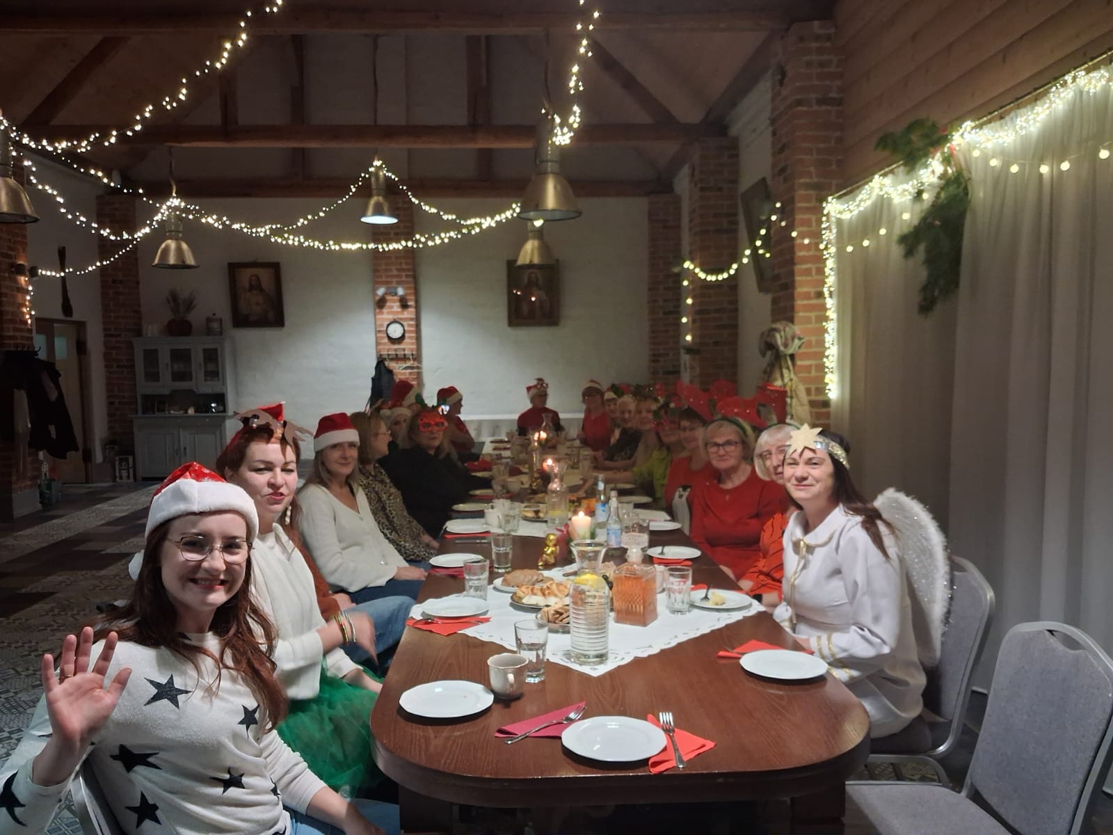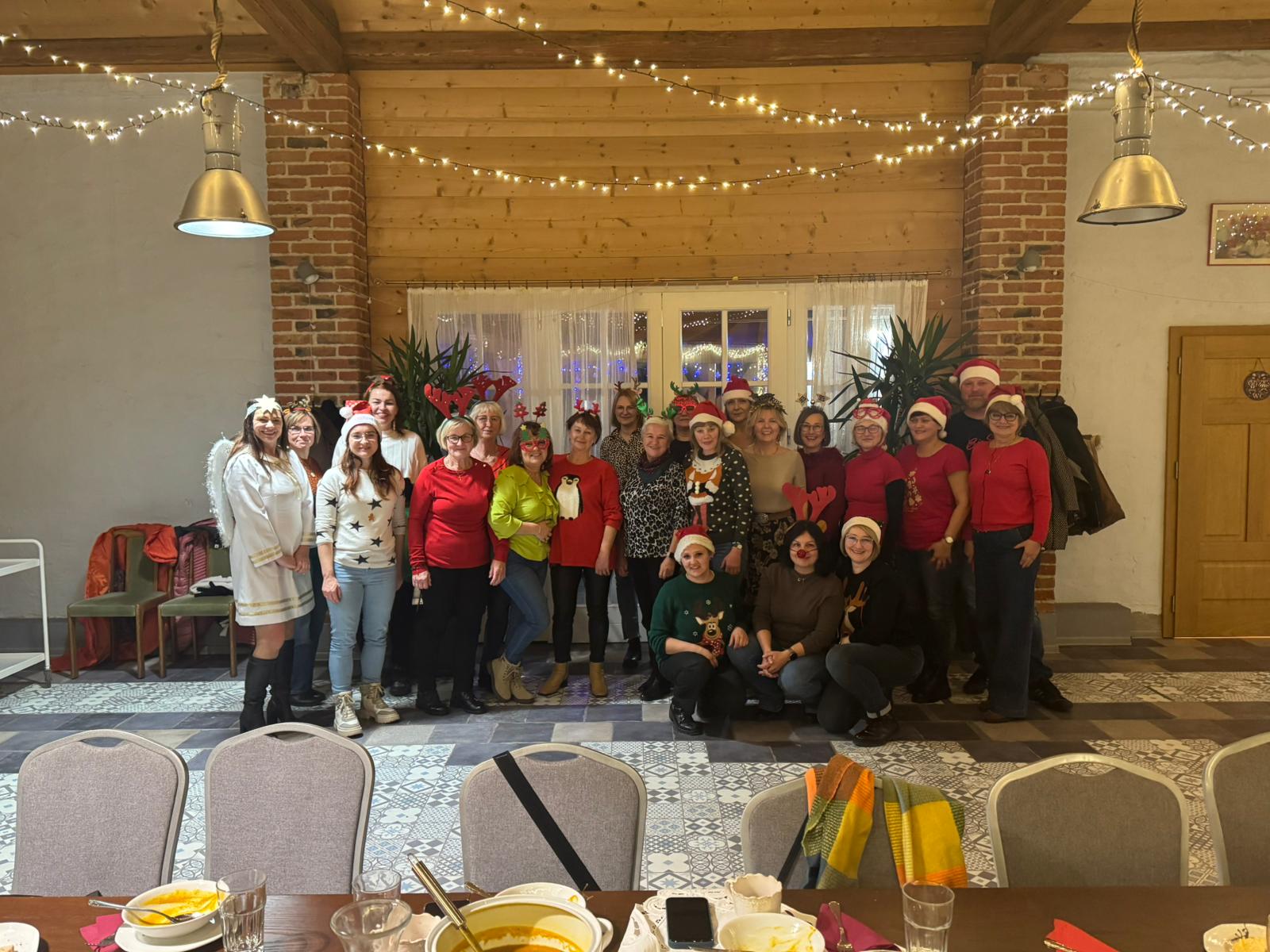 We wtorkowy wieczór grupa uczestniczek zajęć "Zdrowgo Kręgosłupa" spotkała się w Restauracji u Lidii Schroll, aby spędzić to spotkanie inaczej niz zwykle. Pani Roksana na wstępie przygotowała dla uczestniczkek wskazówki do nauki tańca grupowego, który rozgrzał nas w ten chłodny dzień. Po wspólnych ćwiczeniach ruchowych zasiadłyśmy do stołu częstując się smakołykami przygotowanymi przez Pana Artura i Panią Lidię. Po sali rozchodziło się przyjemne ciepło z rozpalonego kominka, słychać było dźwięki muzyki w tle oraz rozmowy i śmiechy uczestniczek. Było to kolejne, miłe integracyjne spotkanie zorganizowane przez Klaudię Kulę i Joannę Korzeniec w ramach działań SMK. Dziękujemy organizatorom i Restauracji Schroll!