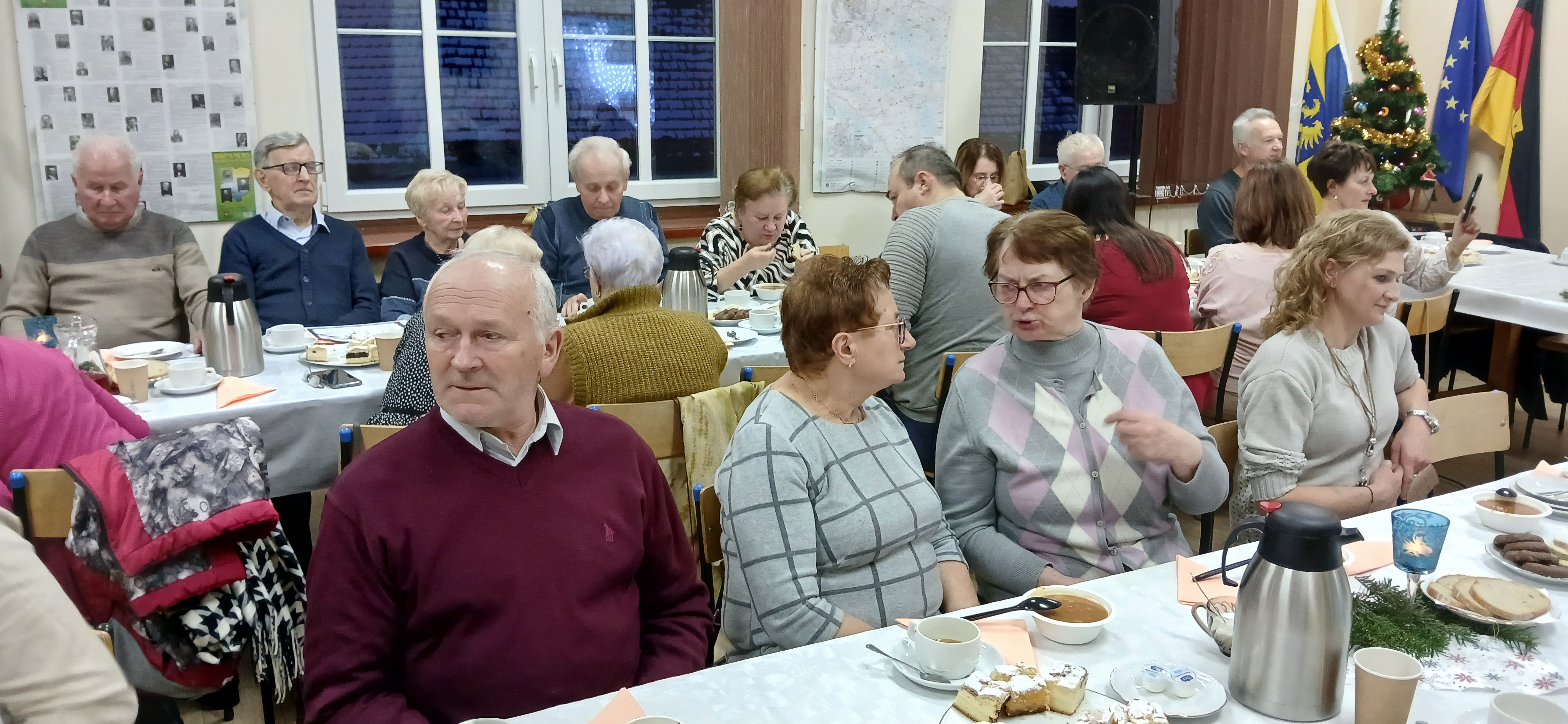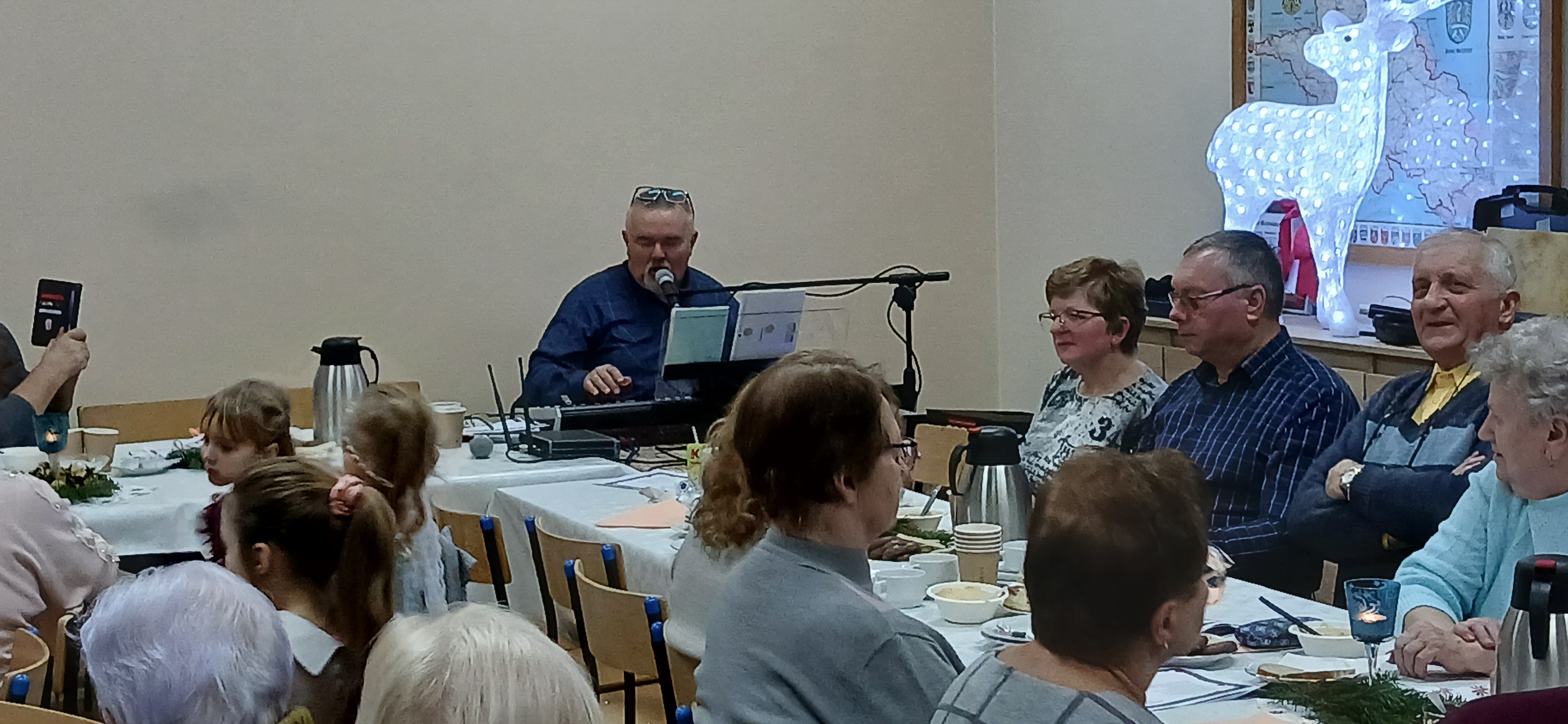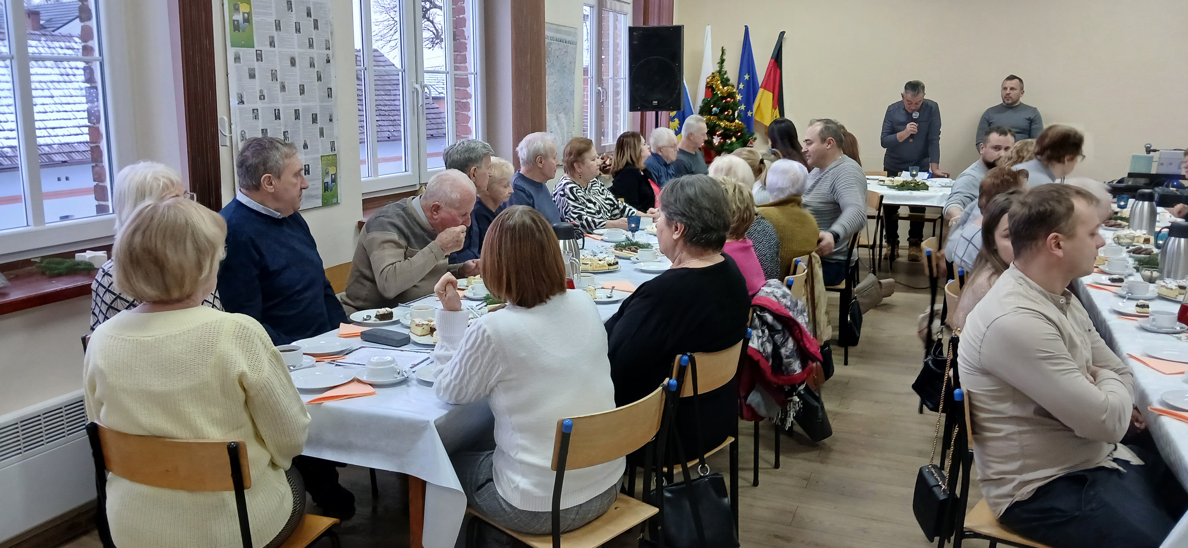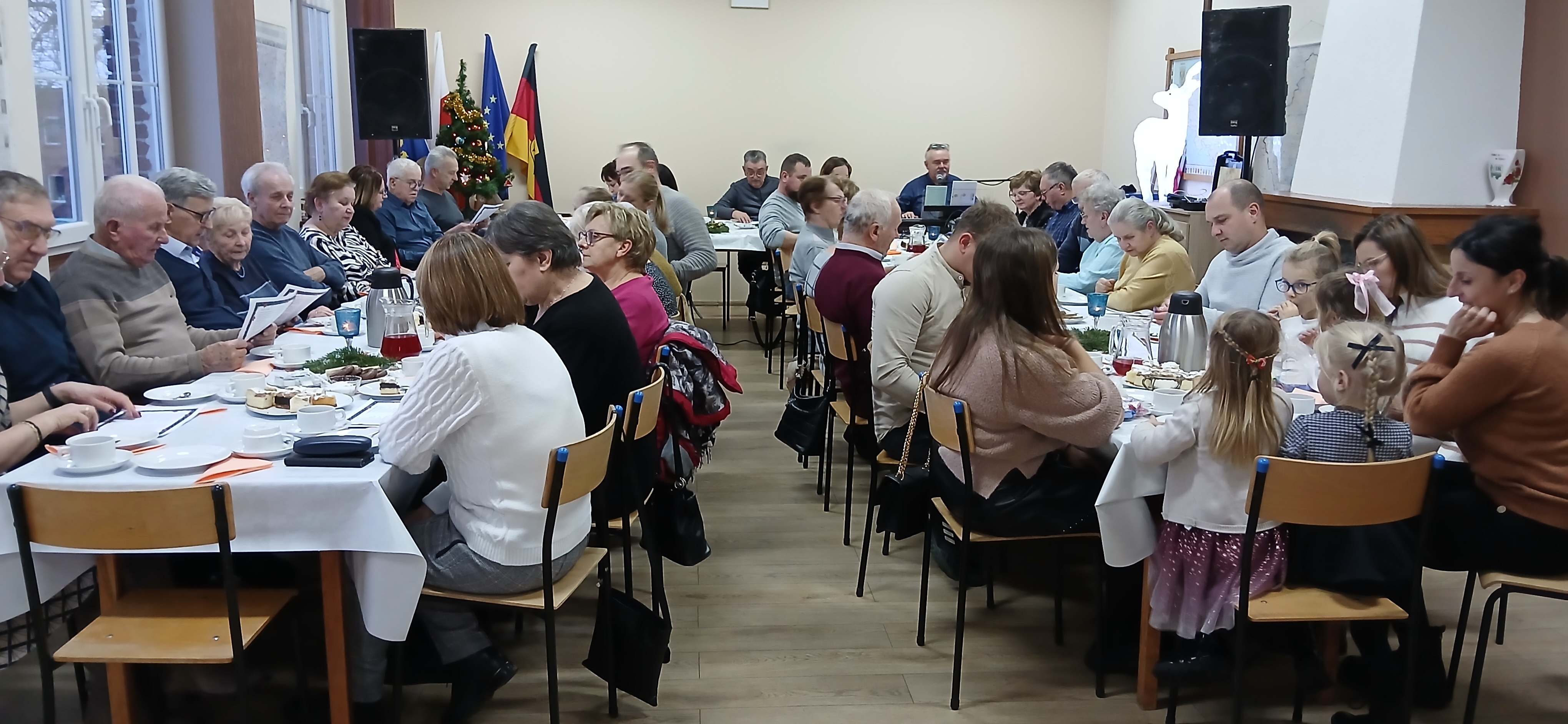 Tradycyjnie w Święto Trzech Króli w świetlicy Starej Szkoły odbyło się "Spotkanie świąteczno-noworoczne/Weihnachtsfeier". Do sali od godz. 15.00 przychodzili goście i zajmowali miejsca przy stole. W kuchni krzątały się Panie przygotowujące poczęstunek, a Pan Adrian Żmuda rozstawiał swoje sprzęty muzyczne. Gdy do sali przybyły dzieci przedszkolne z rodzicami i Pani Dominika Gerlich można było rozpocząć punktualnie uroczystość. Gości przywitali Marcin Konietzko - przewodniczący DFK w Gminie Ozimek i Piotr Szubert, który zainicjował modlitwę w intencji zmarłych członków DFK. Program przygotowany przez dzieci przedszkolne był żywy i dynamiczny. Przedszkolacy pięknie radzili sobie z językiem niemieckim śpiewająć kolędy i piosenki świąteczne wykorzystując małe kastaniety trzymane w rękach. Po występie dzieci Zarząd DFK wręczył wykonawcom małe upominki. W tym czasie zebrani częstowali się kołaczem, kawą, aromatyczną herbatą. Poźniej Restauracja El Gusto zaserwowała pyszną zupę gulaszową. Przez ponad dwie godziny Pan Adrian grał wspaniale zachęcając jak zwykle wszystkich do wspólnego śpiewania kolęd i innych znanych piosenek. Śpiewano w języku niemieckim, polskim i gwarze śląskiej. Na sali było bardzo radośnie, wszyscy byli rozśpiewani i uśmiechnięci. Tak po prostu nie udało sie zakończyć występu Panu Żmudzie, bisował wielokrotnie przy aplauzie zebranych. Po ostatnim utworze Goście zaczęli się rozchodzić do domów po miło spędzonym popołudniu. Szczególne podziękowania kierujemy do Pani Dominki za przygotowanie dzieci do występu i poświęcony prywatny czas. Zarząd DFK dziękuje również Paniom: Ilonie Feliks, Sylwii Szubert, Edycie Wer, Irenie Prukop i Dorocie Skrzypczyk za włączenie się do pomocy w przygotowaniu sali do spotkania i sprzątaniu po odbytym wydarzeniu. W pracach prowadzonych w sobotę i w środę uczestniczyli ponadto Sylwia Widawska, Piotr Szubert, Marcin Szubert. Marcin Konieztko i Norbert Wieschollek.