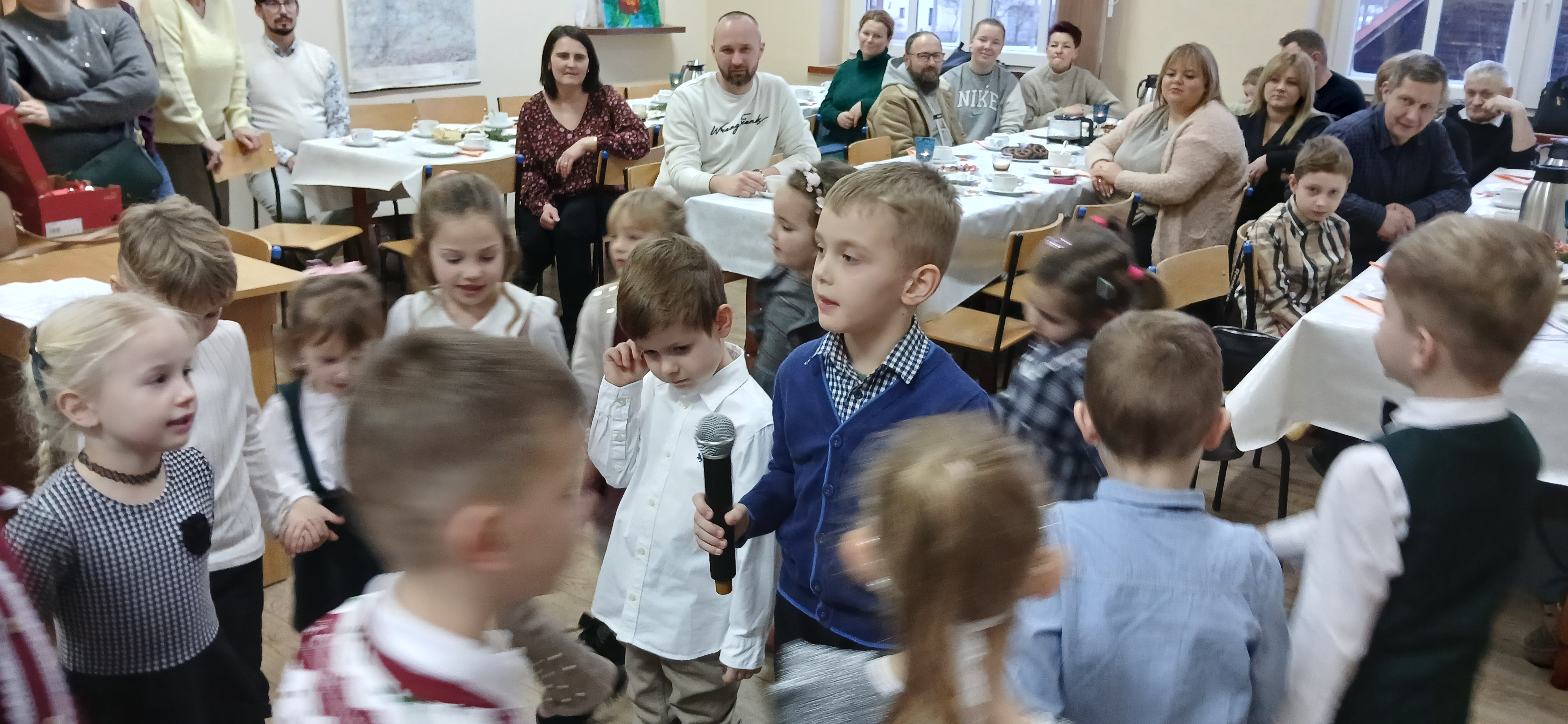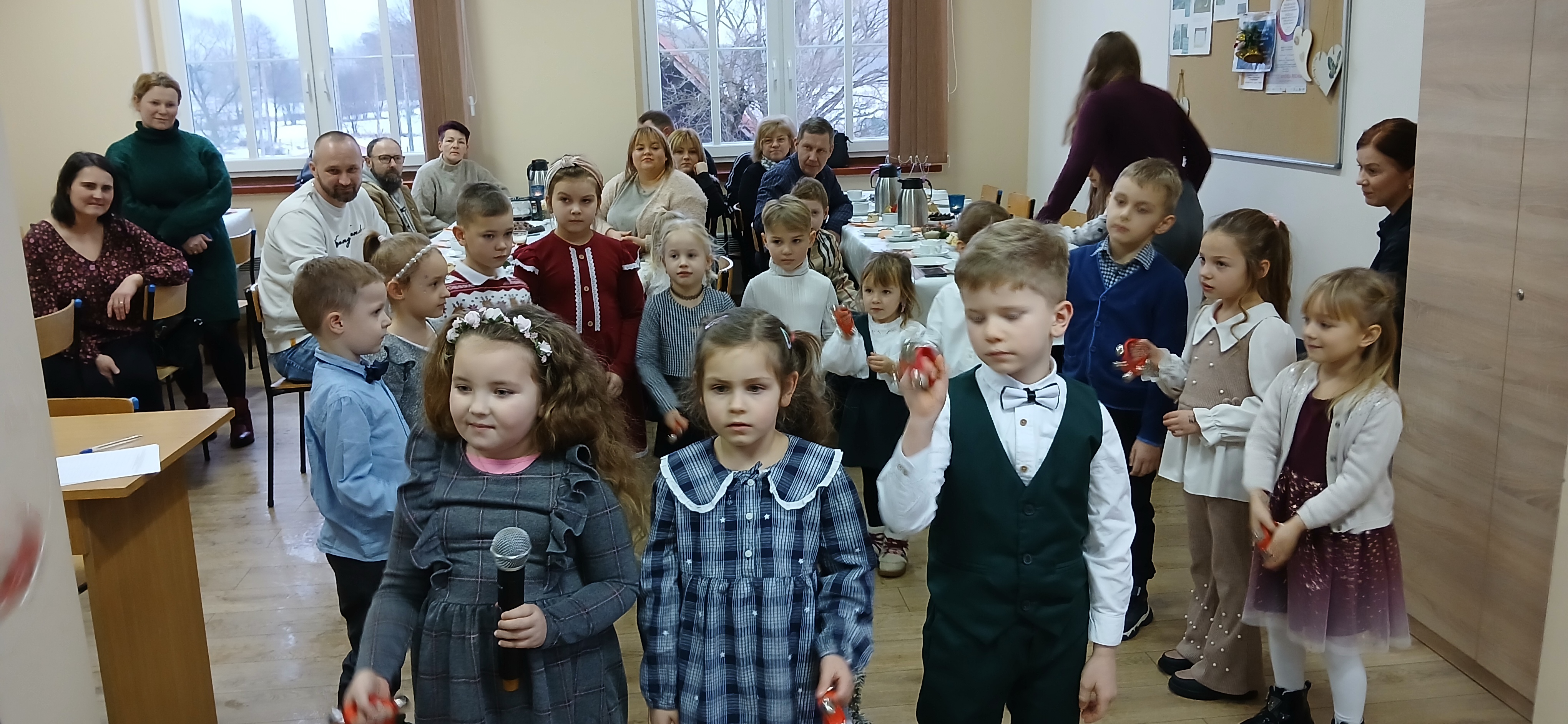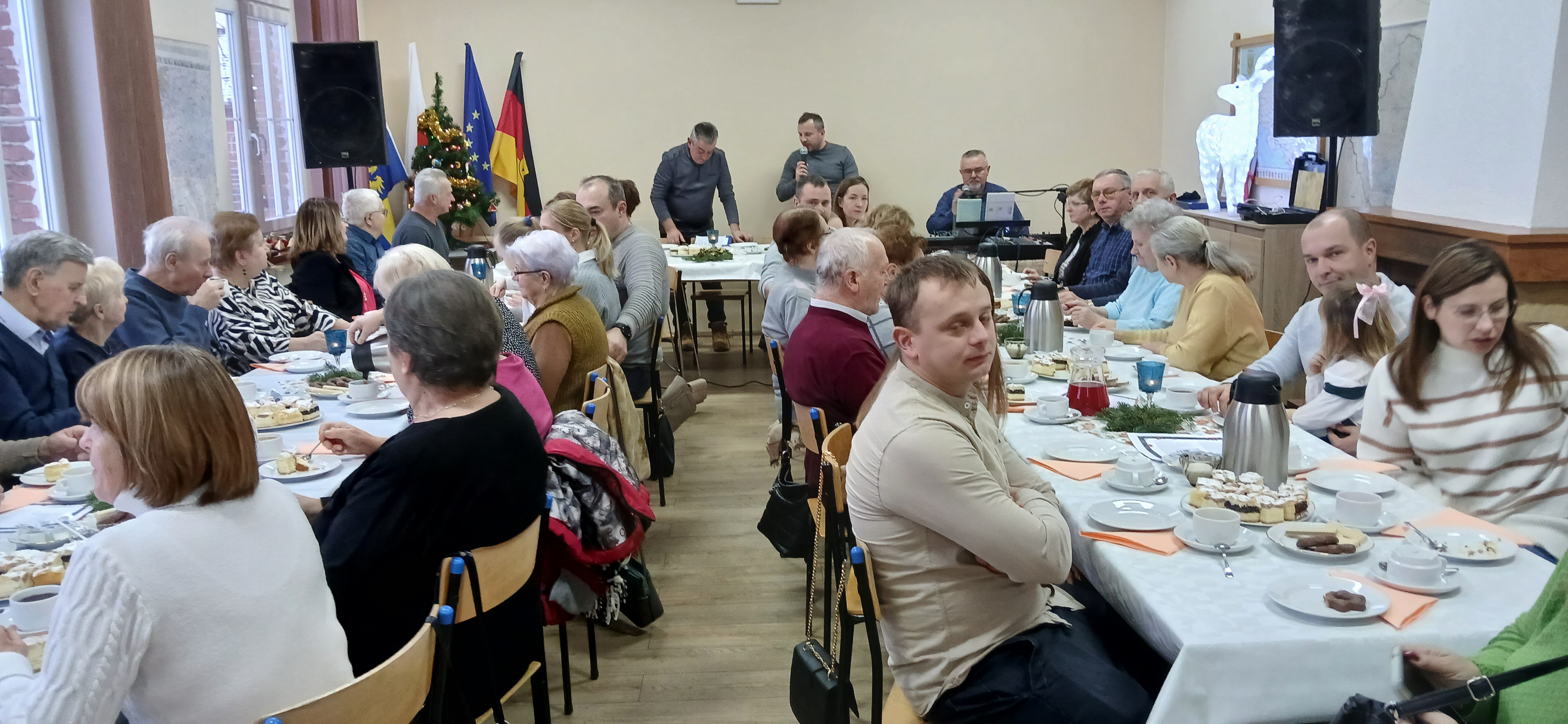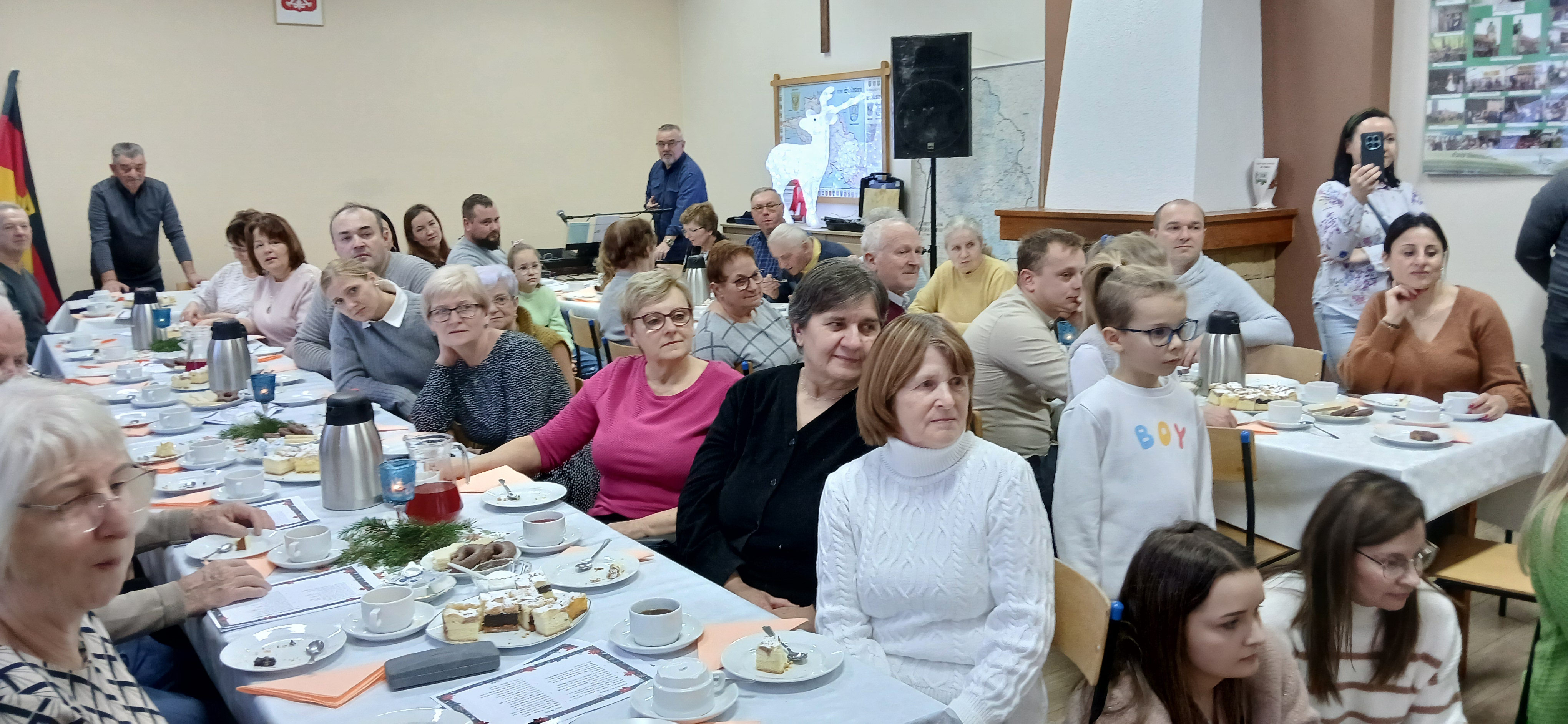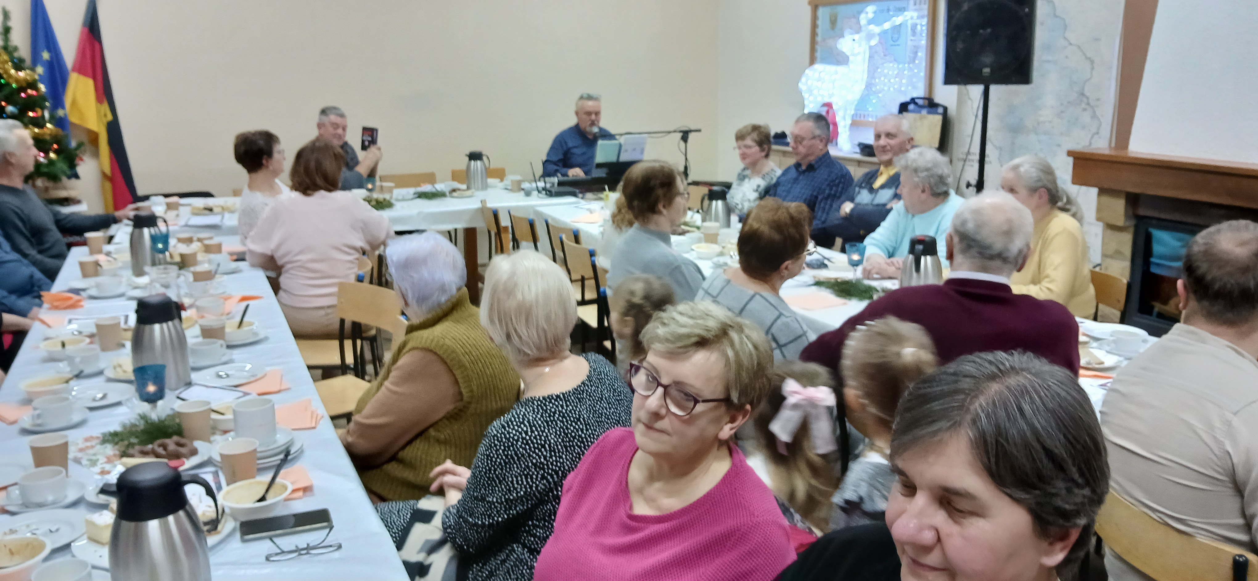 Tradycyjnie w Święto Trzech Króli w świetlicy Starej Szkoły odbyło się "Spotkanie świąteczno-noworoczne/Weihnachtsfeier". Do sali od godz. 15.00 przychodzili goście i zajmowali miejsca przy stole. W kuchni krzątały się Panie przygotowujące poczęstunek, a Pan Adrian Żmuda rozstawiał swoje sprzęty muzyczne. Gdy do sali przybyły dzieci przedszkolne z rodzicami i Pani Dominika Gerlich można było rozpocząć punktualnie uroczystość. Gości przywitali Marcin Konietzko - przewodniczący DFK w Gminie Ozimek i Piotr Szubert, który zainicjował modlitwę w intencji zmarłych członków DFK. Program przygotowany przez dzieci przedszkolne był żywy i dynamiczny. Przedszkolacy pięknie radzili sobie z językiem niemieckim śpiewająć kolędy i piosenki świąteczne wykorzystując małe kastaniety trzymane w rękach. Po występie dzieci Zarząd DFK wręczył wykonawcom małe upominki. W tym czasie zebrani częstowali się kołaczem, kawą, aromatyczną herbatą. Poźniej Restauracja El Gusto zaserwowała pyszną zupę gulaszową. Przez ponad dwie godziny Pan Adrian grał wspaniale zachęcając jak zwykle wszystkich do wspólnego śpiewania kolęd i innych znanych piosenek. Śpiewano w języku niemieckim, polskim i gwarze śląskiej. Na sali było bardzo radośnie, wszyscy byli rozśpiewani i uśmiechnięci. Tak po prostu nie udało sie zakończyć występu Panu Żmudzie, bisował wielokrotnie przy aplauzie zebranych. Po ostatnim utworze Goście zaczęli się rozchodzić do domów po miło spędzonym popołudniu. Szczególne podziękowania kierujemy do Pani Dominki za przygotowanie dzieci do występu i poświęcony prywatny czas. Zarząd DFK dziękuje również Paniom: Ilonie Feliks, Sylwii Szubert, Edycie Wer, Irenie Prukop i Dorocie Skrzypczyk za włączenie się do pomocy w przygotowaniu sali do spotkania i sprzątaniu po odbytym wydarzeniu. W pracach prowadzonych w sobotę i w środę uczestniczyli ponadto Sylwia Widawska, Piotr Szubert, Marcin Szubert. Marcin Konieztko i Norbert Wieschollek.